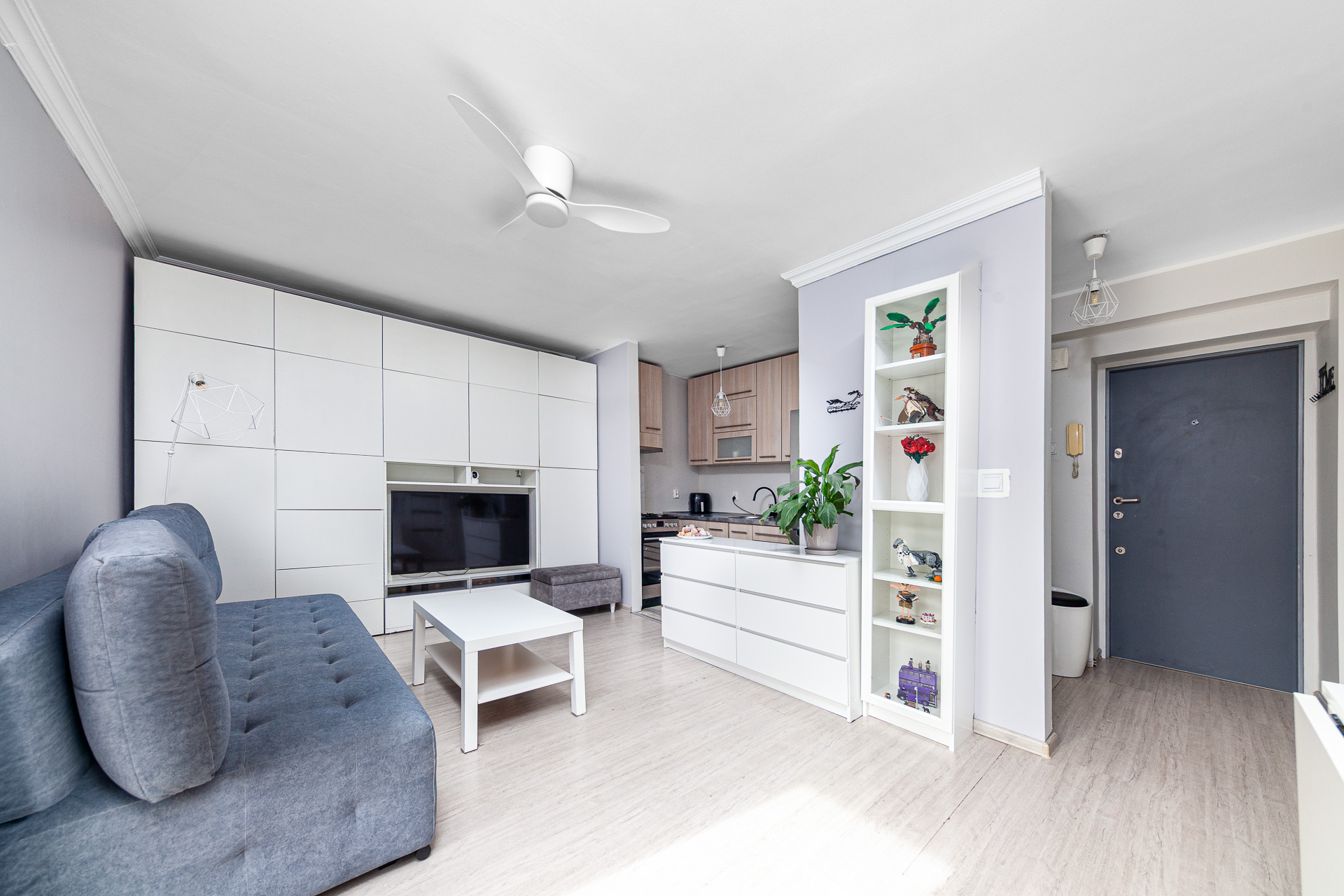Mieszkanie można podzielić na część wypoczynkową (salon wraz z aneksem kuchennym) i sypialnianą.