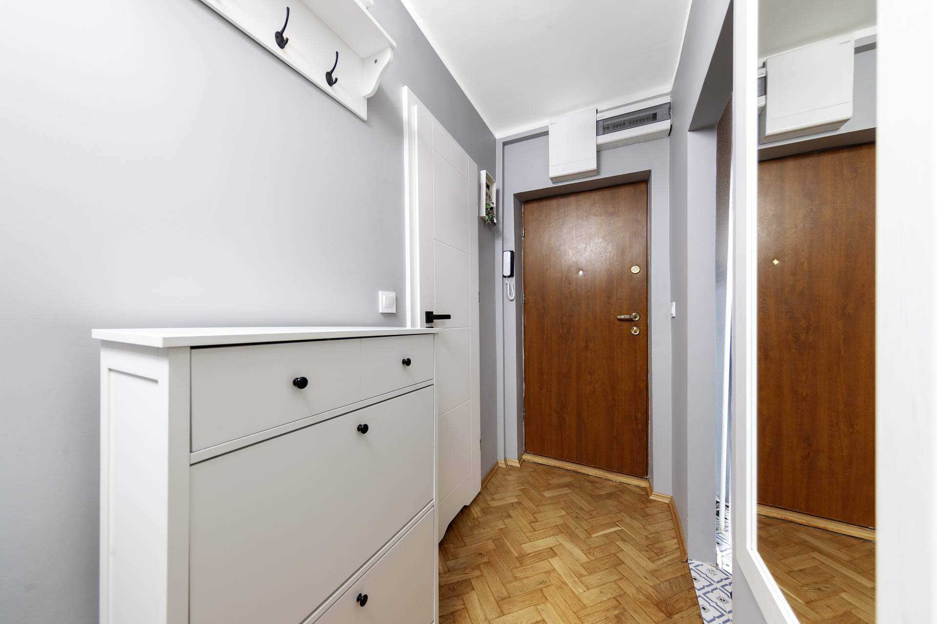 Mieszkanie przeszło generalny remont w 2025 roku, z wymianą instalacji elektrycznej i wodnej (2024 r.). Zostało wykończone z dbałością o detale, w jasnych, neutralnych barwach. Całość jest w pełni umeblowana, a sprzęty objęte są jeszcze gwarancją producenta.