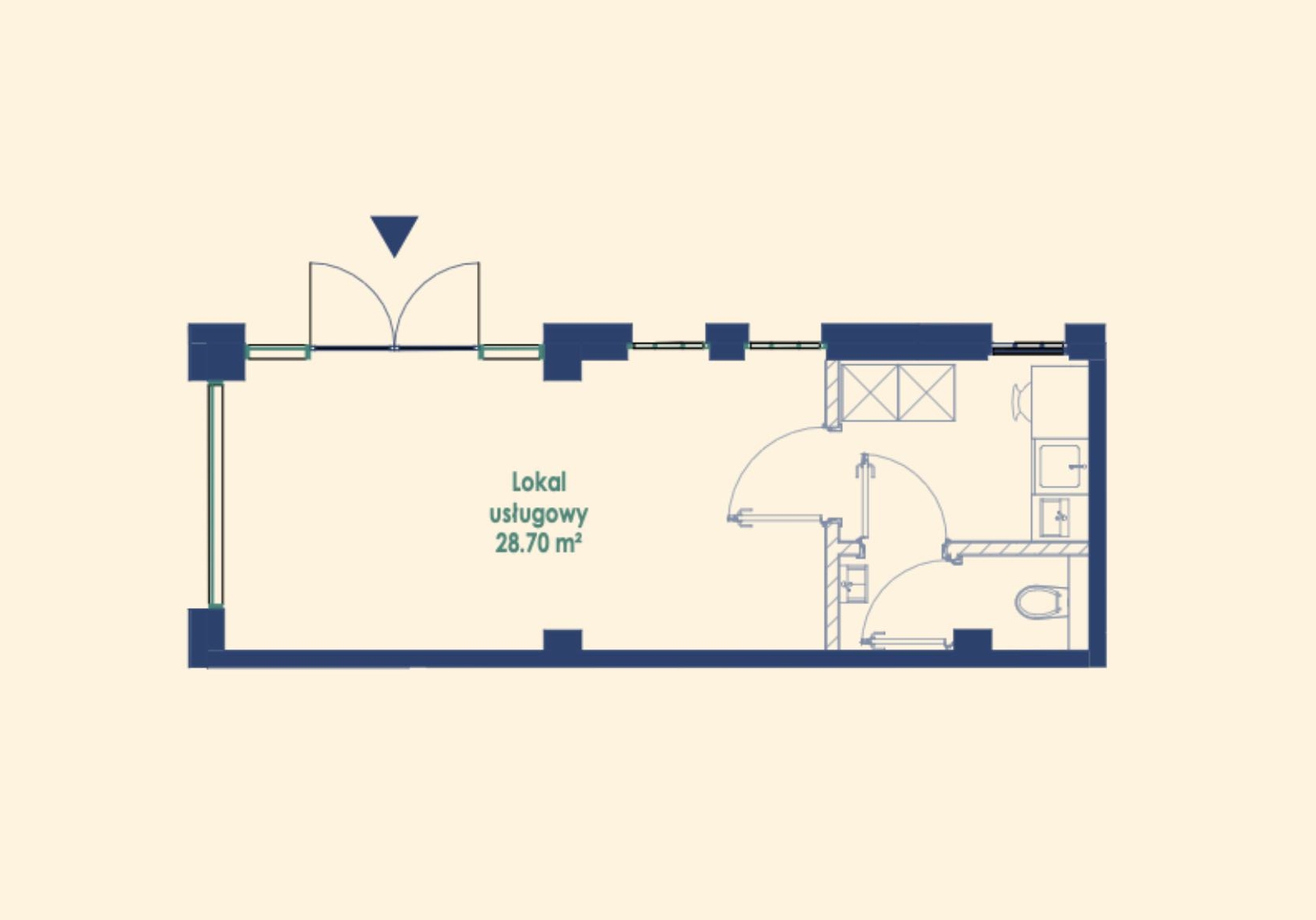 Powierzchnia lokalu to 28,70 m2, na którą składają się:
